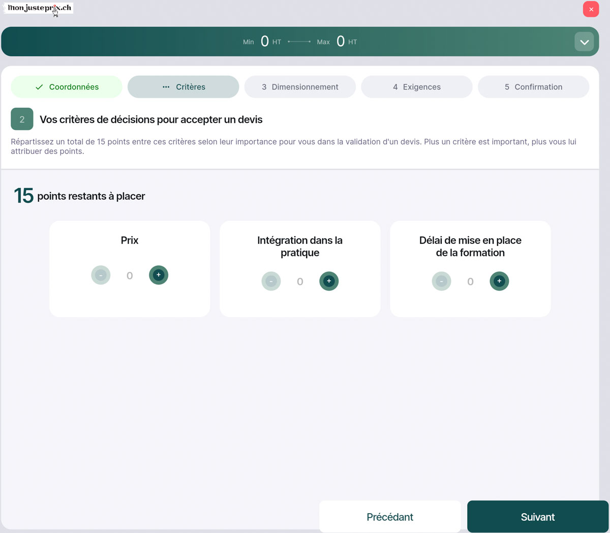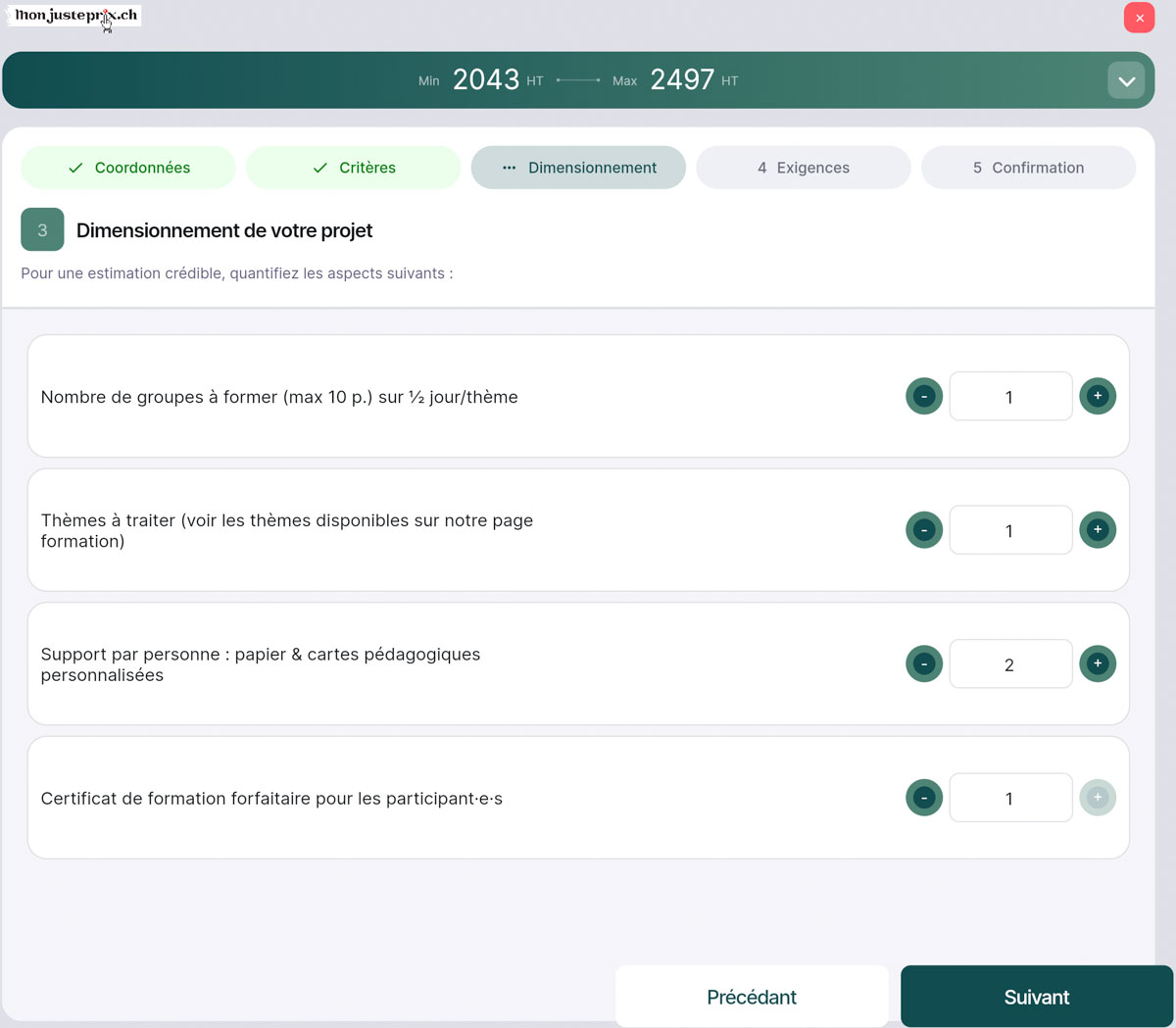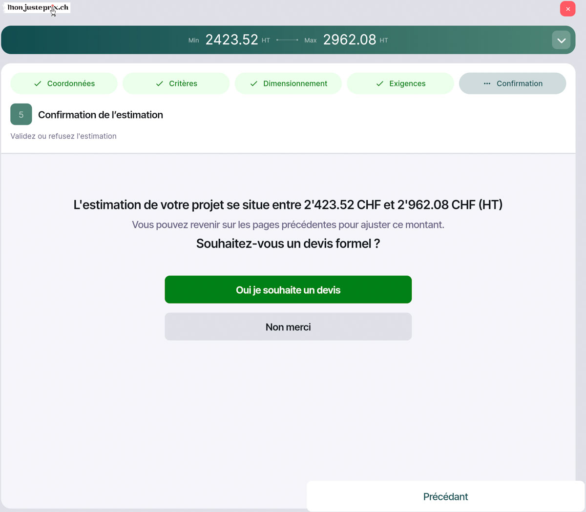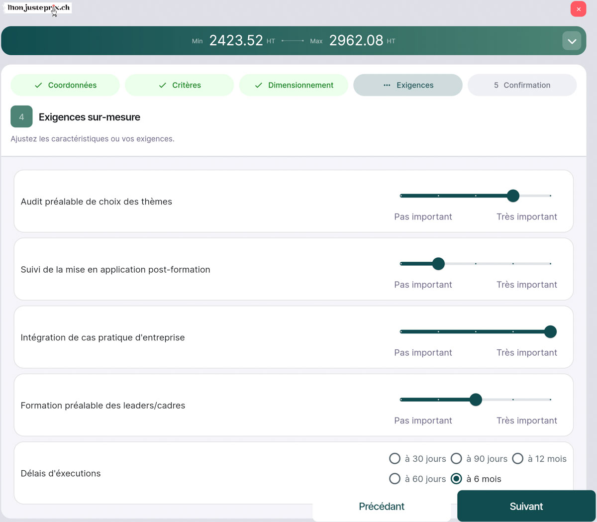 MonJustePrix.ch est une application web qui permet à vos prospects d’estimer le budget qu’ils sont prêts à investir pour un projet.